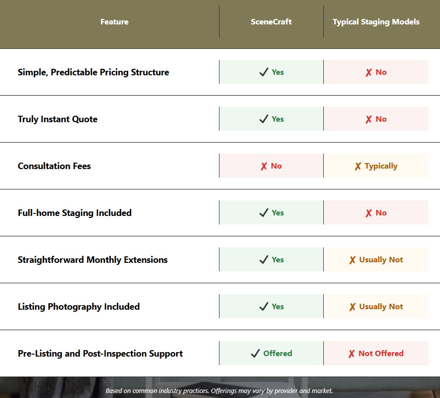 We don’t believe in partial staging or charging extra for what should be standard. Buyers experience the entire home, not just select rooms. That’s why we stage the entire property, every time.